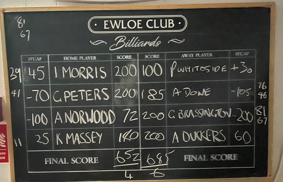| WAVERTON A | 8 | v | 2 | EWLOE A |