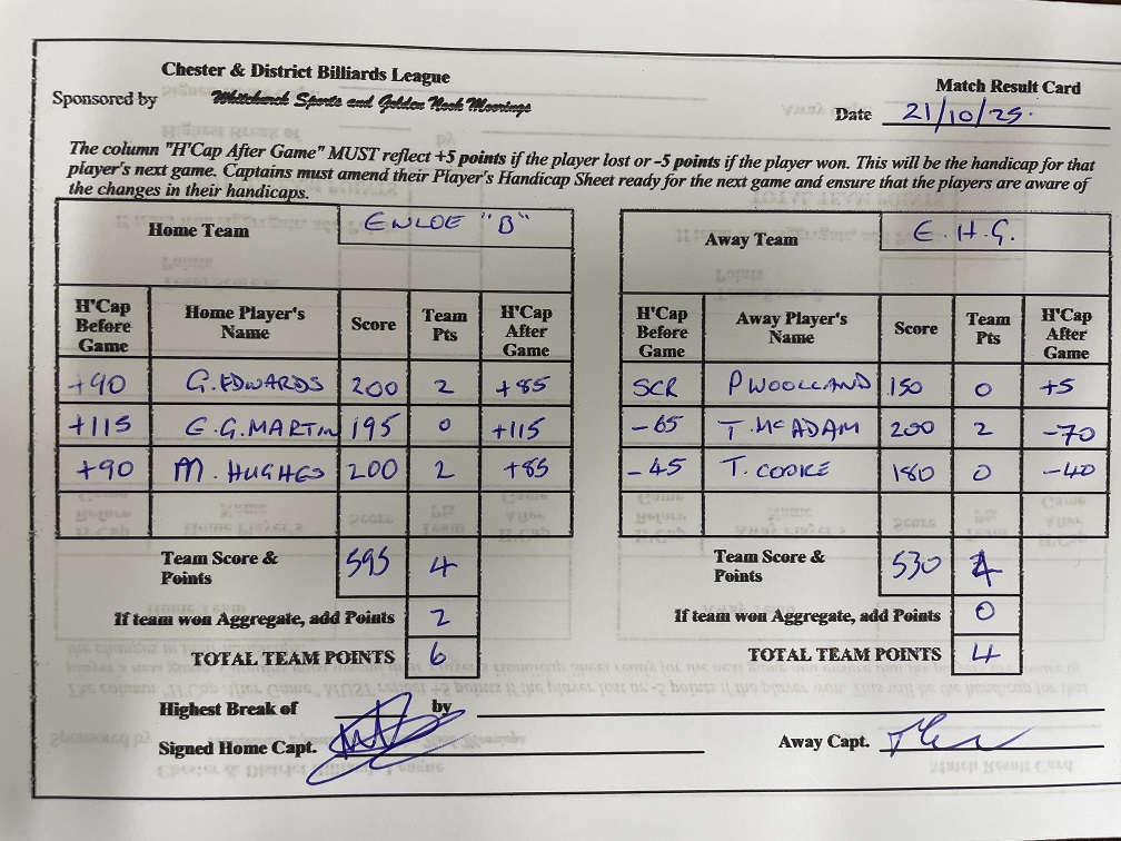 | EWLOE B | v | UPTON B | Week9 : 18th November 2025 | |